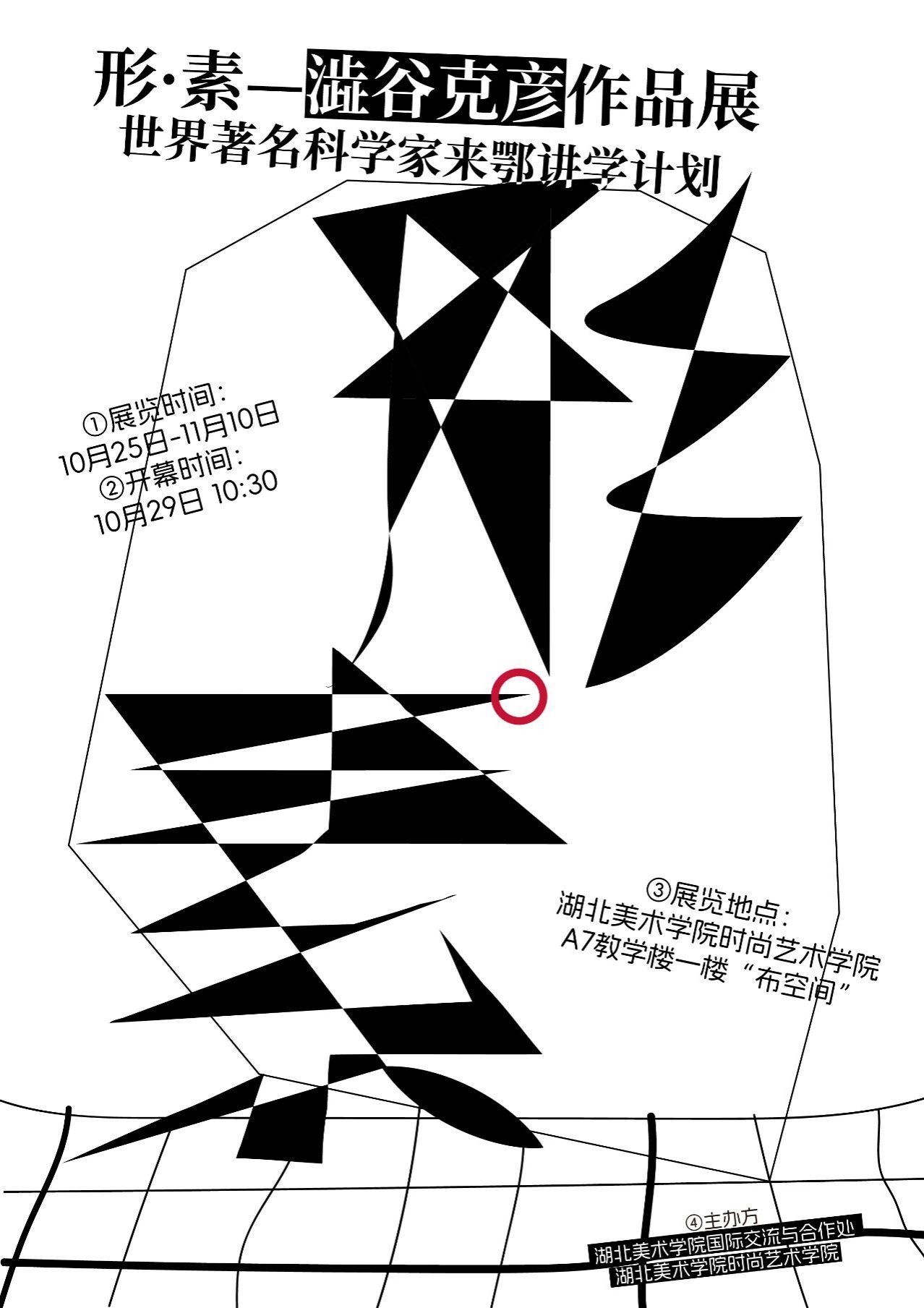 作为本次世界著名科学家来鄂讲学计划系列活动的核心环节,湖北美术学院时尚艺术学院携手国际交流与合作处举办《形·素——世界著名科学家来鄂讲学计划澁谷克彦作品展》将于10月29日在我院藏龙岛校区A7教学楼一楼布空间正式开幕,并同期举办面向全校师生的公开学术讲座。