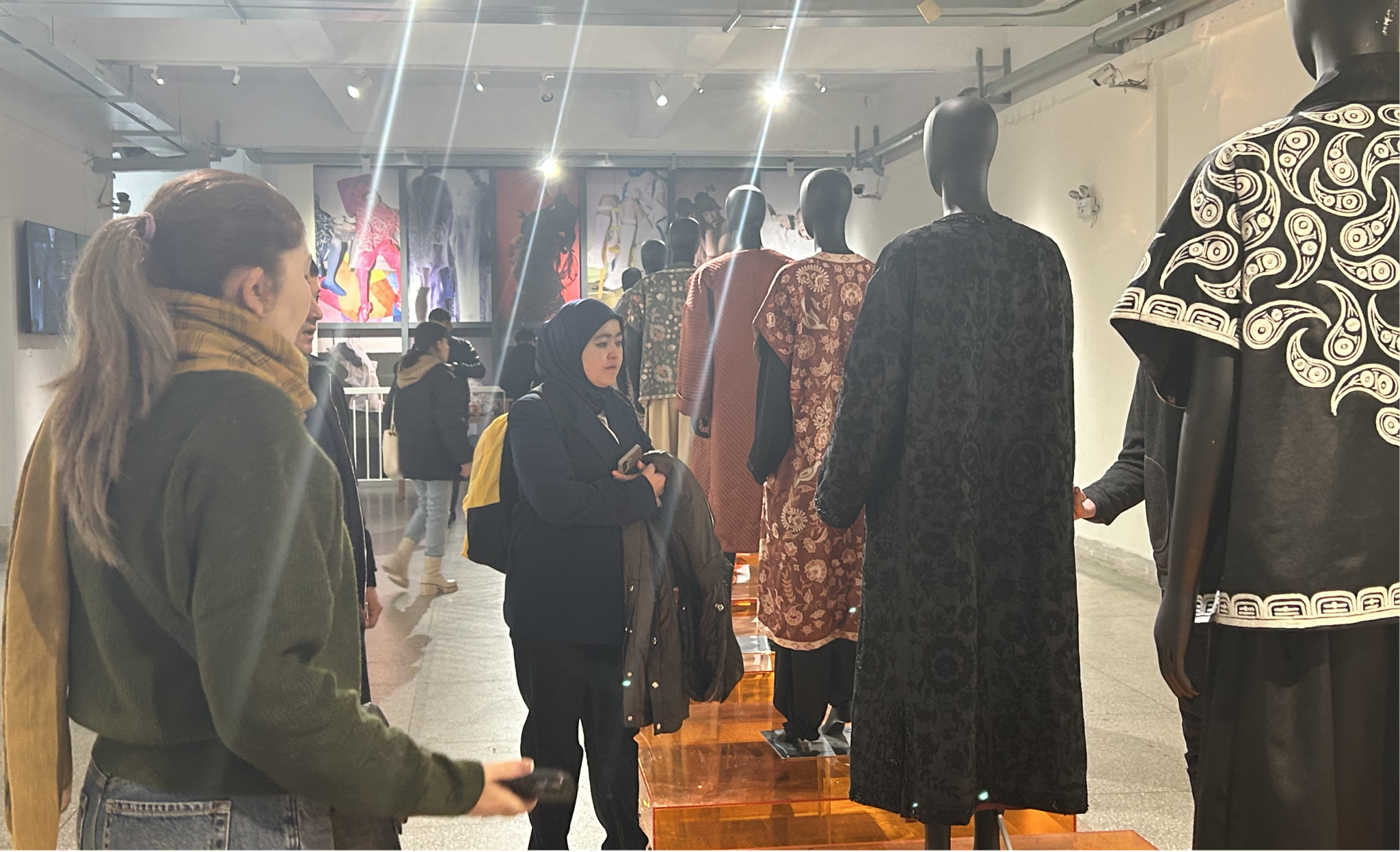 交流期间,乌兹别克斯坦艺术科学院代表团携一批极具代表性的民族服装,于时尚艺术学院二楼大厅作集中展示。这些服饰纹样独特、工艺精湛、民族特色鲜明,为我院师生带来了一场精彩纷呈的文化与视觉盛宴,生动展现了乌兹别克斯坦深厚的民族艺术底蕴。
