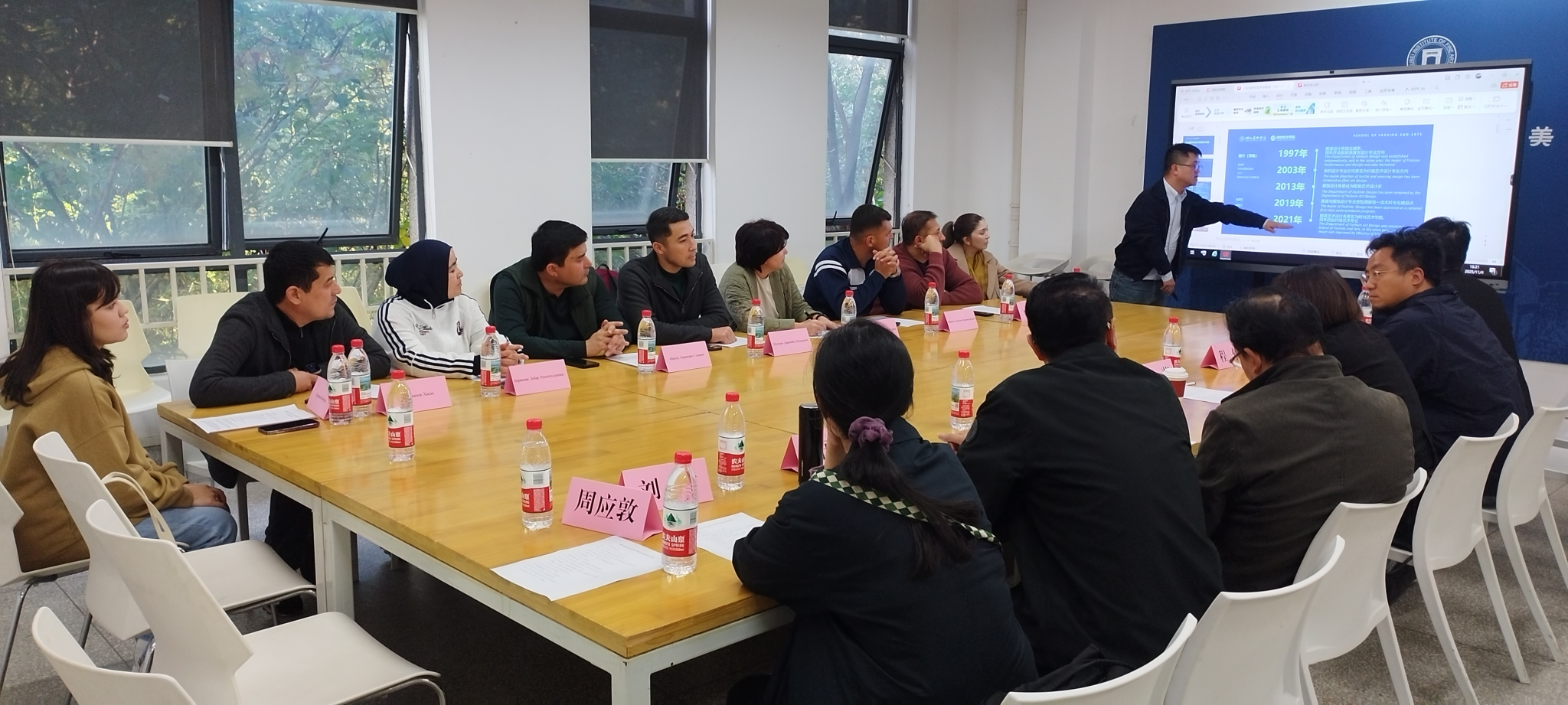 代表团由乌兹别克斯坦艺术学院继续教育中心主任舒库罗夫・达夫龙别克博士率领,成员包括莫利丁・别克佐达国立艺术与设计学院院长尼沙诺娃・卡莫拉博士、共和国专业设计学校校长萨拉希丁诺夫・马苏丁博士等九位艺术教育与设计领域的资深专家。11月4日下午15时30分,代表团一行莅临我院,与时尚艺术学院举行学术交流座谈会。我院党委书记吴春、院长吴萍等八位教师代表出席本次会议。