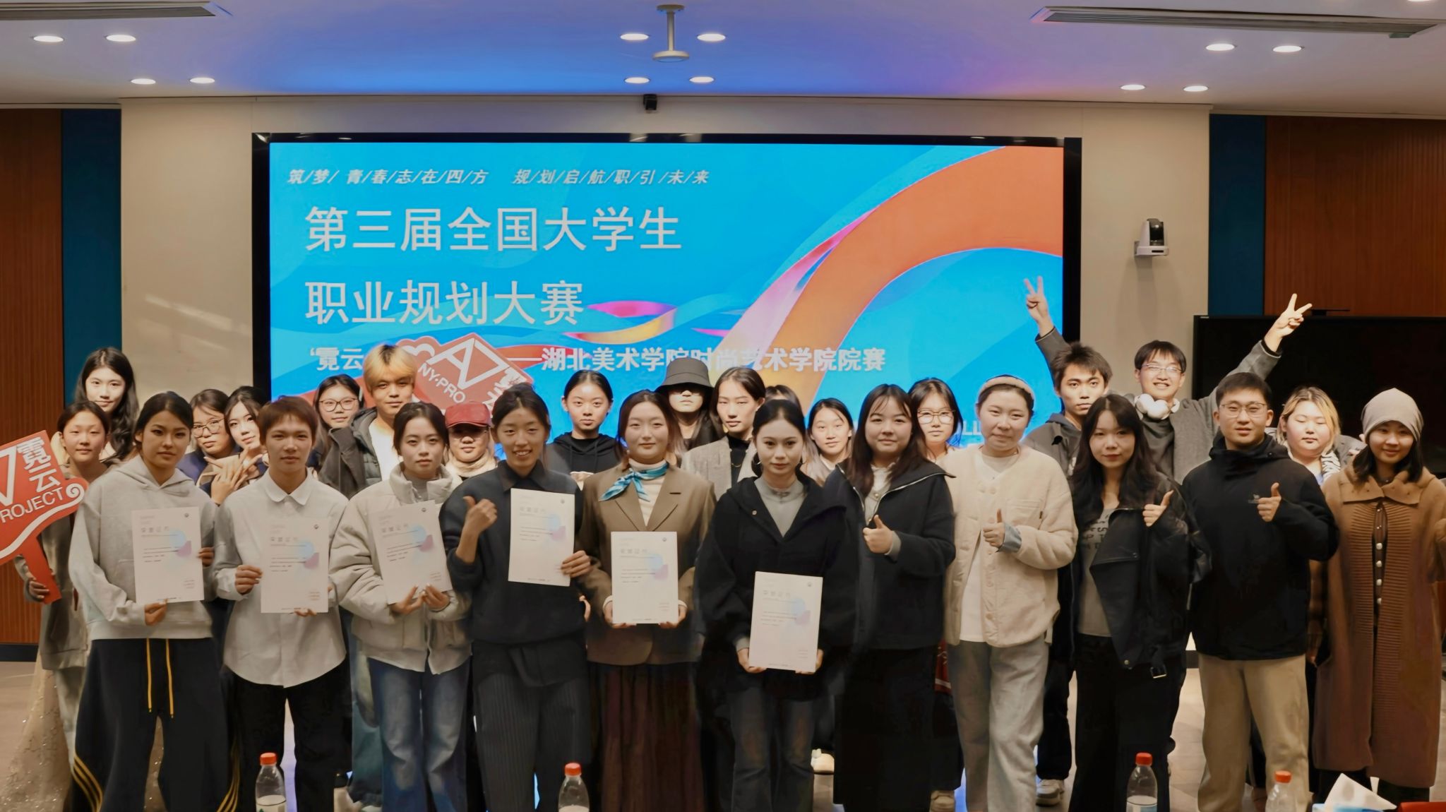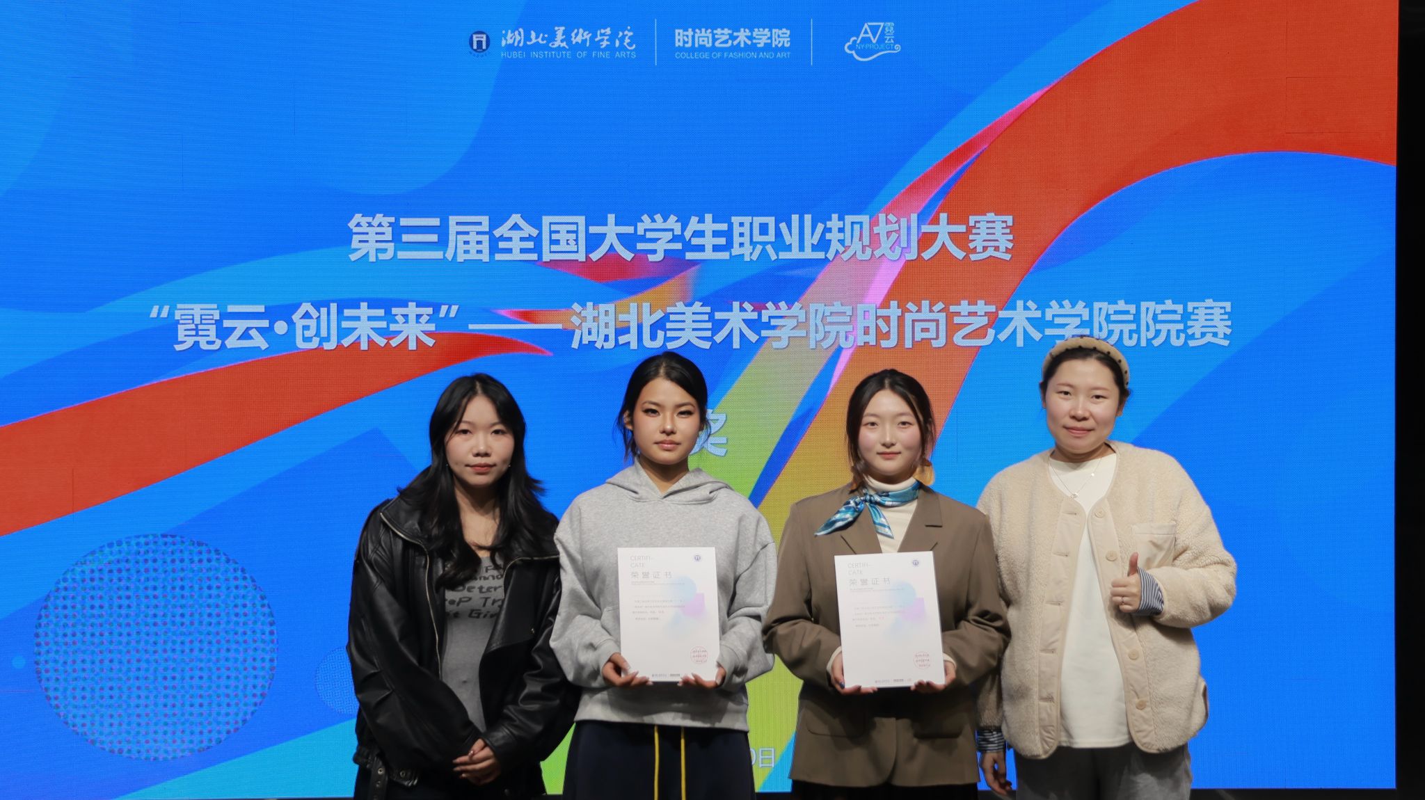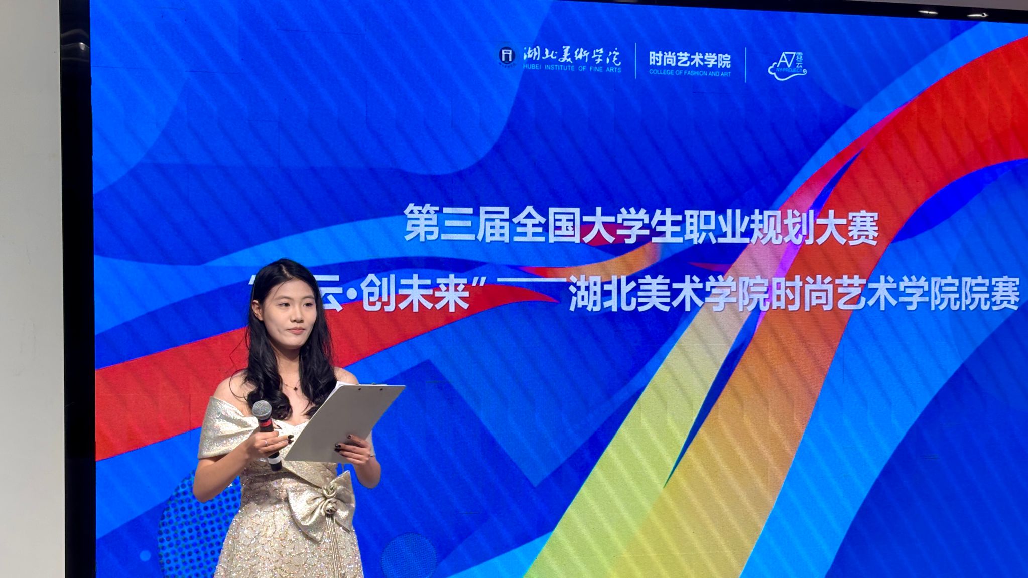为贯彻落实党中央、国务院关于做好高校毕业生就业工作的决策部署,强化高校生涯教育和就业指导,增强大学生职业规划意识,促进高质量充分就业。在学校招生就业处指导下,时尚艺术学院全面筹备、正式启动第三届全国大学生职业规划大赛“霓云创未来”时尚艺术学院院赛,并于11月20日在A12-105教室落下帷幕。本次比赛邀请了我校招生就业处副处长丁向阳、招生就业处老师王雪、湖北美术学院时尚艺术学院党委书记吴春以及时尚艺术学院辅导员刘瑶、徐惠、李天、王诗睿老师,共同担任比赛评委和指导老师。大赛由我院表演专业学生厉轩妤主持。