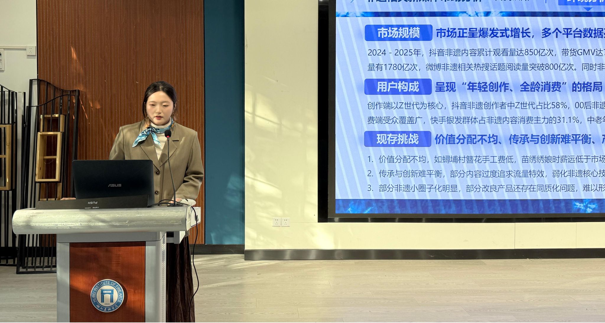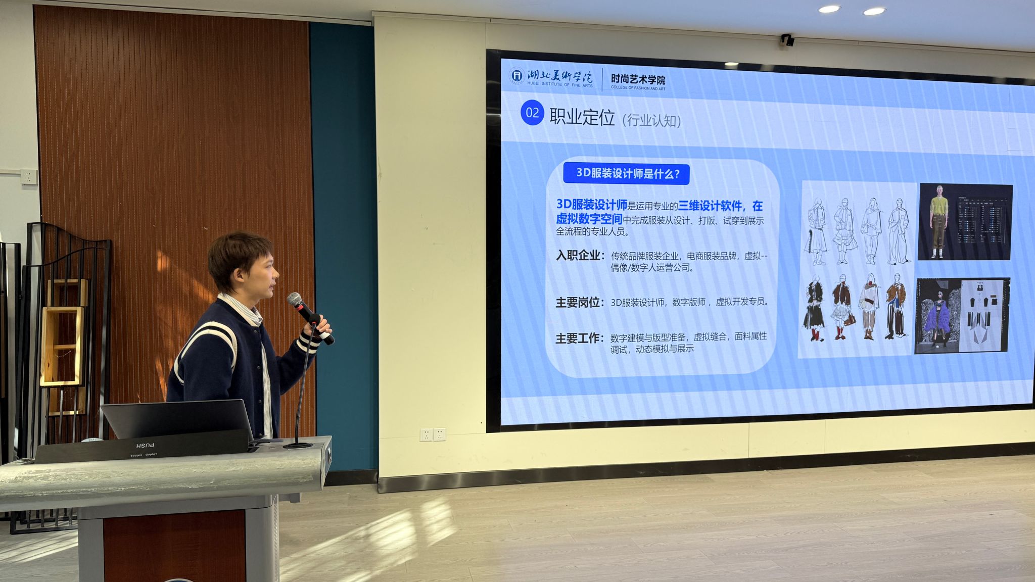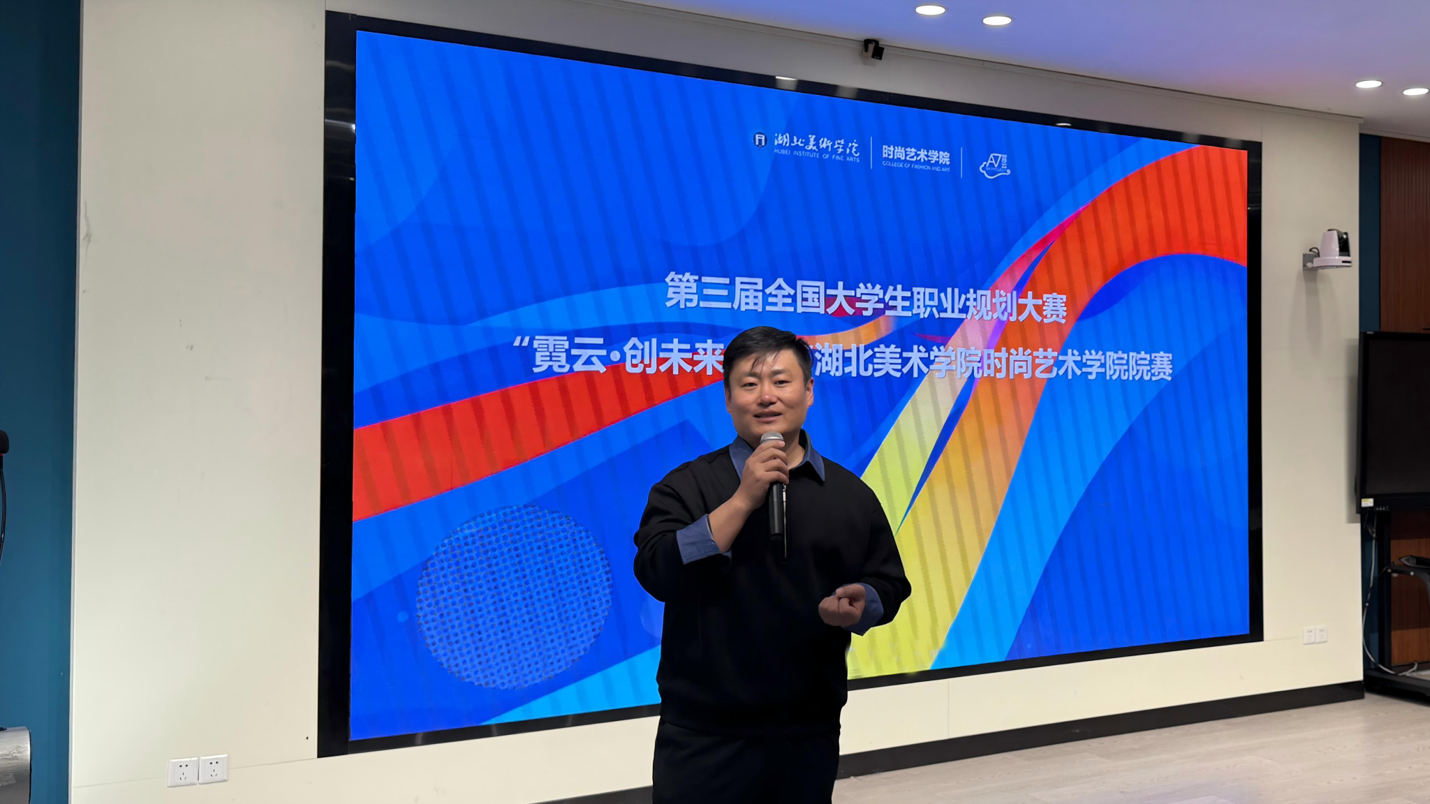 大赛伊始,湖北美术学院招生就业处副处长丁向阳老师致辞,首先对现场同学的积极参与表示鼓励,并说明职业规划大赛的主题和目标,提出选手要加深对于未来职业目标的深度探索,包括了解行业人脉、目标人物及其学术方向的匹配度,以及对职业精神的全方位理解。希望通过本次大赛,能够增强学生职业规划意识、提升自我认知与定位能力,促进理论知识与实践的深度融合,明确职业方向,勇敢追梦。