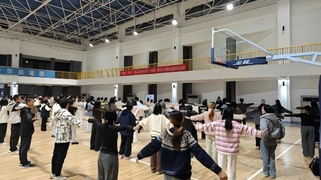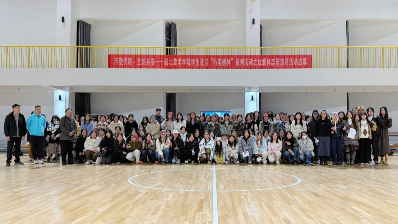 为贯彻教育部“学生体质强健计划”,落实学校“五美五维计划”与“行美健体”育人要求。2025年11月26日晚,时尚艺术学院2025年优雅体态塑造月活动在藏龙岛校区体育馆正式启动。湖北美术学院时尚艺术学院党委书记吴春、校党委学生工作部副部长张波、公共课部体育教研室主任全远刚、时尚艺术学院辅导员王诗睿、研究生张文惠、林逸及164名青年学子共同出席见证并这一重要时刻。