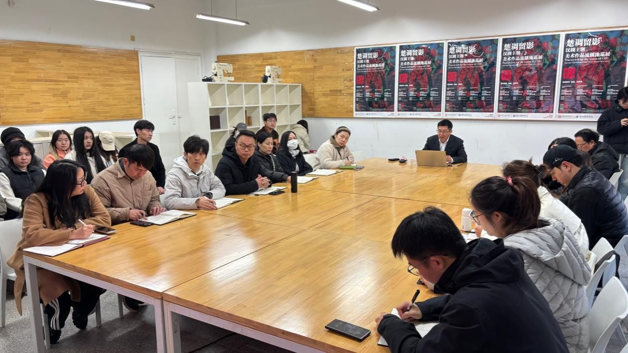 宣讲会上,程智力副校长围绕三个维度展开系统阐释,为师生们带来了一堂既有理论高度又有实践温度的思政课。会上介绍了党的二十届四中全会的基本概况与重大意义,全会审议通过的“十五五”规划建议,在基本实现社会主义现代化进程中具有承前启后的重要地位。结合高校办学职能,程智力副校长聚焦“一体推进教育科技人才发展”这一战略部署,深入剖析了高等教育发展规律与学校办学实际展开路径。随后,又进一步传达了湖北省委十二届十一次全会精神,结合湖北省“ 四期叠加”的阶段性特征,解读了全会的重点部署与湖北特色,引导师生深刻认识学校在服务湖北“建成中部地区崛起重要战略支点”中的职责使命,结合学校艺术类办学特色,着重强调了文化传承与创新的时代价值。他表示,作为华中地区唯一一所艺术院校的师生,我们应当积极传承弘扬长江文化、荆楚文化、红色文化,推动传统文化创造性转化、创新性发展,这与湖北建设文化强省的目标高度契合,为推进文化强国建设贡献湖美智慧。