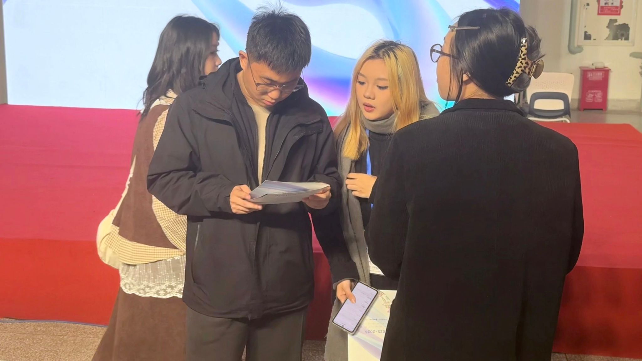 表彰环节结束后,年终晚会在欢快的氛围中正式拉开帷幕。晚会由邹世旭、牛婧媛、王靖涵、张嘉懿主持。他们以热情洋溢的开场和默契自然的配合迅速点燃了现场气氛。伴随着精彩纷呈的节目陆续上演,同学们沉浸其中,掌声与欢笑声此起彼伏。现场洋溢着轻松愉快的节日气息。在互动游戏环节,同学们更是踊跃参与,积极配合,充分展现了青春洋溢、团结友爱的良好精神风貌。