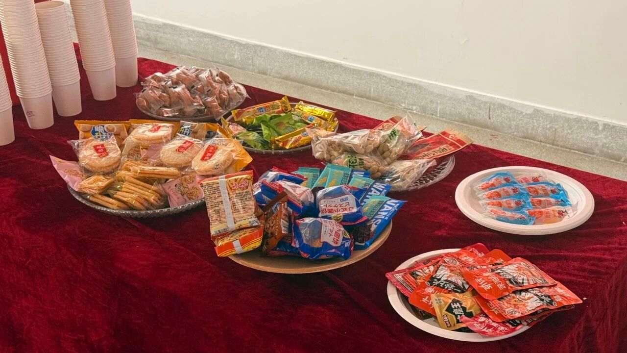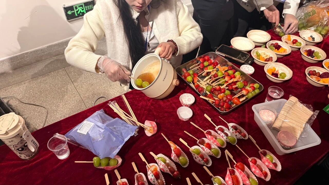 本次年终晚会贴心地为大家准备了丰富多样的美食,香甜可口的糖葫芦、暖心暖胃的热饮应有尽有。现场同学们一边欣赏节目,一边尽情品尝美味,欢声笑语不断,大家吃得开心、聊得尽兴,在热闹温馨的氛围中共享这份属于年终的甜蜜与欢乐。