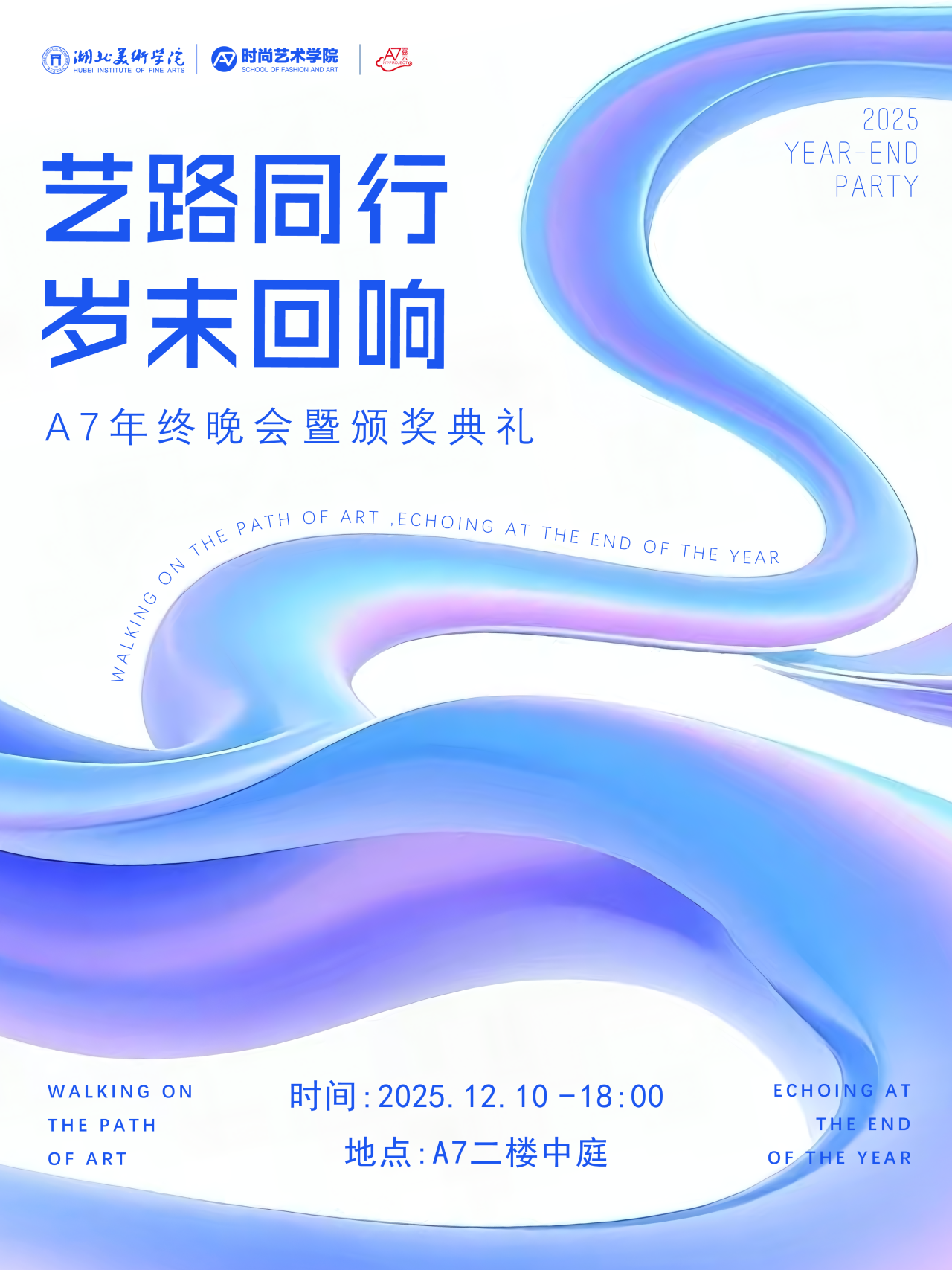 巳蛇送冬,午马迎春。2025年12月10日晚,时尚艺术学院2025年“艺路同行·岁末回响”A7年终晚会暨颁奖典礼在A7二楼中厅隆重举行。湖北美术学院团委书记刘琨、招生就业处副处长丁向阳、党委学生工作部副部长张波等行政部门与兄弟学院领导老师们热情捧场。时尚艺术学院党委书记吴春、副院长杨阳、马来西亚知名服装设计师、法国esmod国际服装学院马来西亚校区时尚设计负责人宗柏伸以及学院师生们共同参与此次晚会。大家齐聚一堂,共同回望2025年的奋斗足迹,迎接2026马年的崭新篇章!